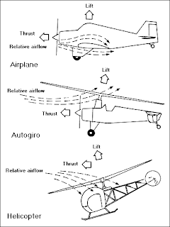 A diferencia del helicóptero, el rotor del autogiro no está accionado por un motor sino que funciona como un molinillo de viento, como se muestra en la figura (fuente